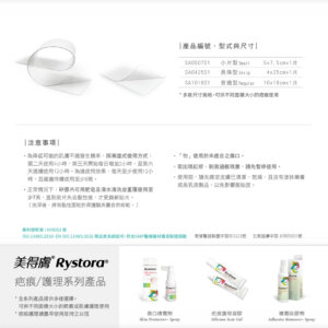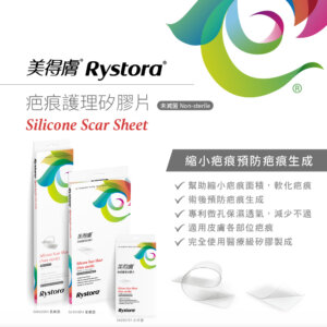 美得膚 Rystora 疤痕護理矽膠片(未滅菌)採用醫療級矽膠,具有專利的微孔設計,平衡組織中的水分含量。水分鎖定在需要的地方,並消除多餘的水分,軟化組織恢復更快。美得膚疤痕貼片方便清洗,至少可重複使用7天,較其它疤痕護理矽膠片更具成本優勢。