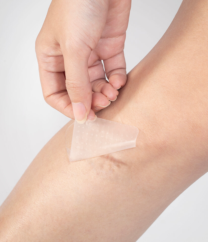 美得膚®疤痕護理矽膠片(未滅菌)採用醫療級矽膠,具有專利的微孔設計,平衡組織中的水分含量。