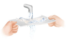 可用肥皂及清水,以指腹輕撥膠面。洗淨後,將有黏性面朝上,置於產品包裝袋上,自然晾乾。